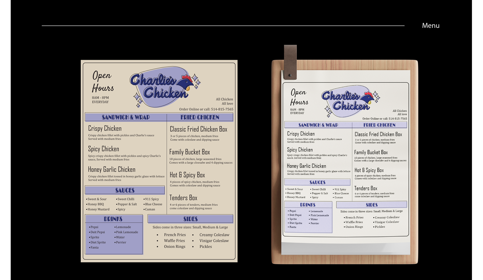 , created a full identity built from scratch. I designed the logo, color system, packaging, menu, and stationery. The look is bold and friendly with clean type and simple shapes that make the brand easy to spot on shelf and in store.