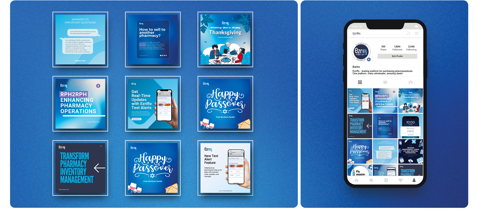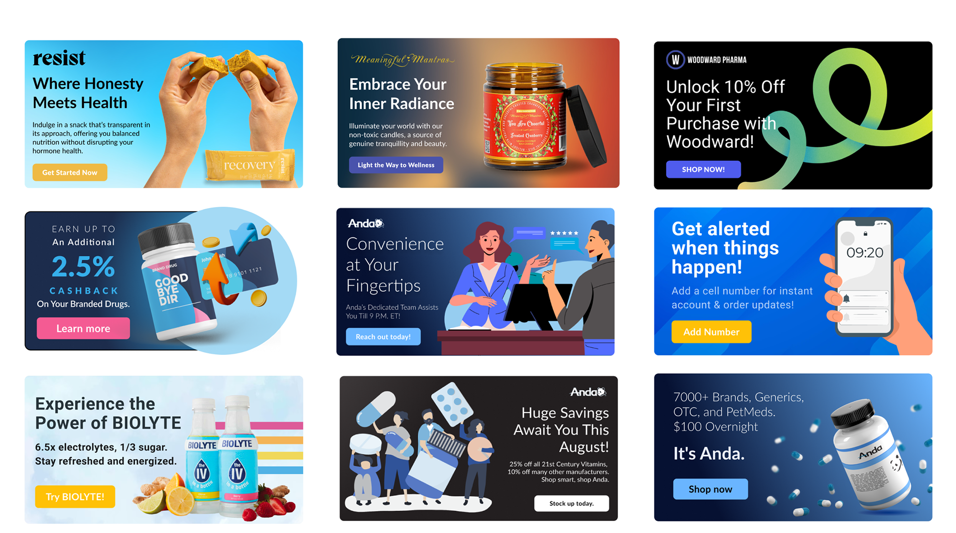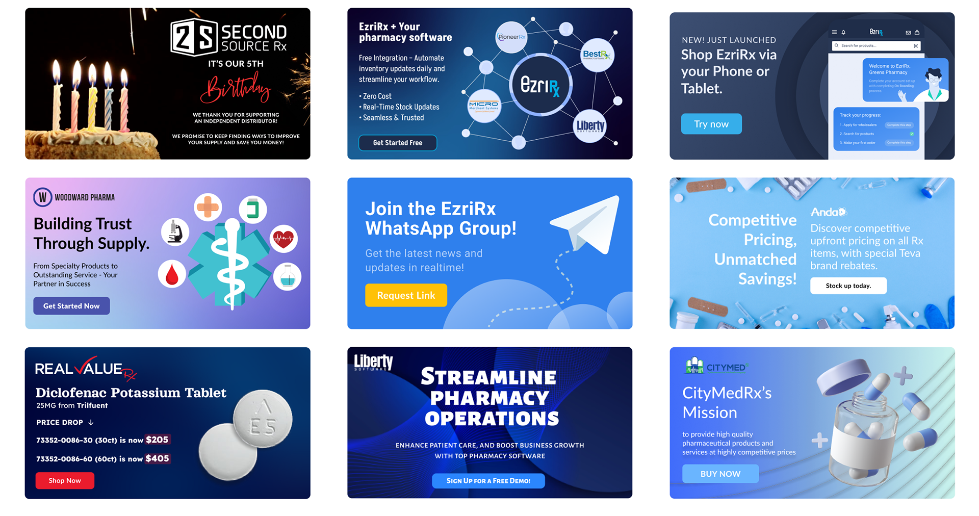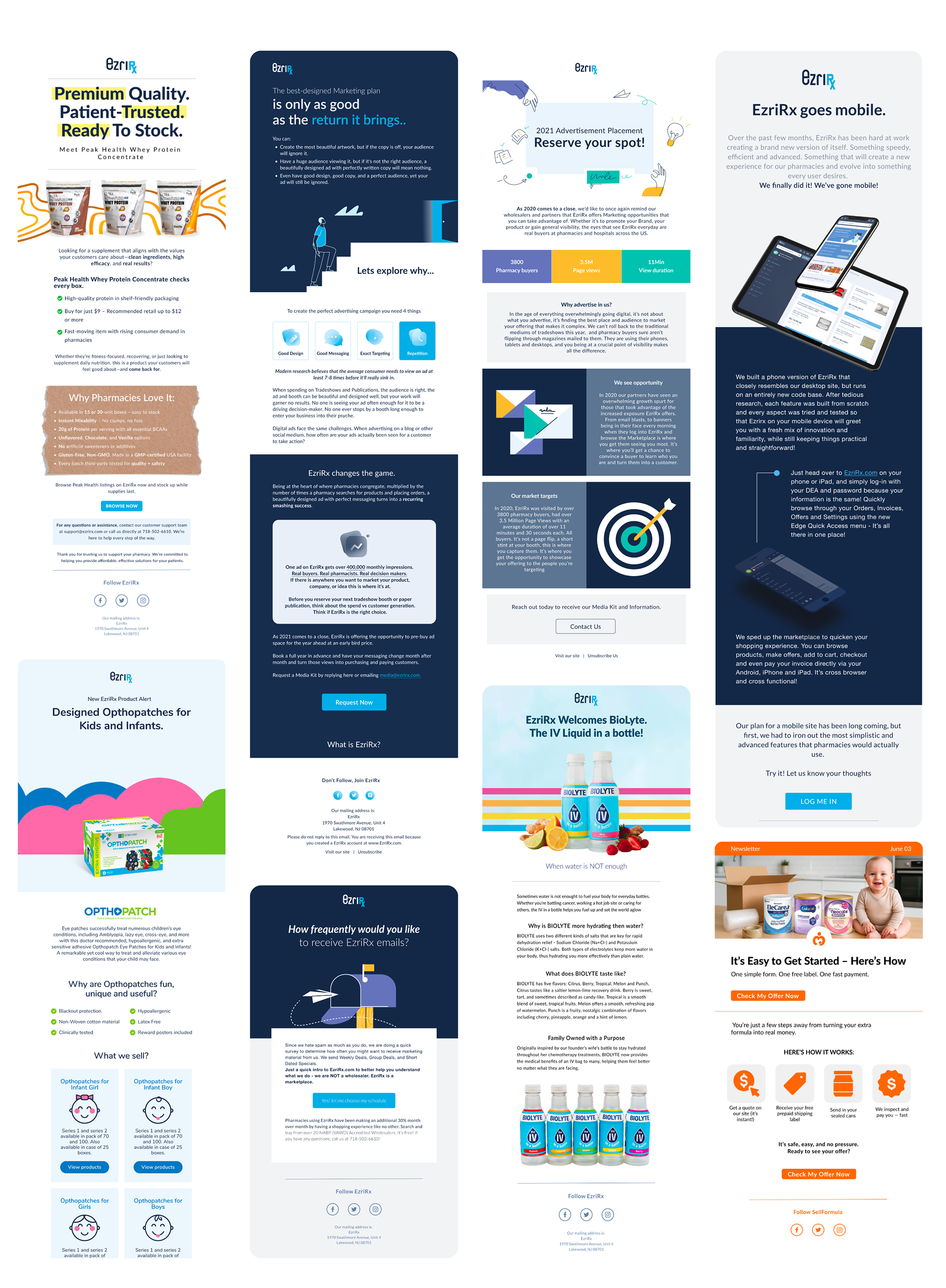 EzriRx, a B2B pharmaceutical platform, I craft visuals for the parent brand and its sub-brands SellFormula, Meaningful Mantra and ModestResell. My scope covers social content, email campaigns, paid ads, packaging, web pages, and complete brand systems, ensuring every piece stays consistent and compelling for healthcare and pharmacy audiences.